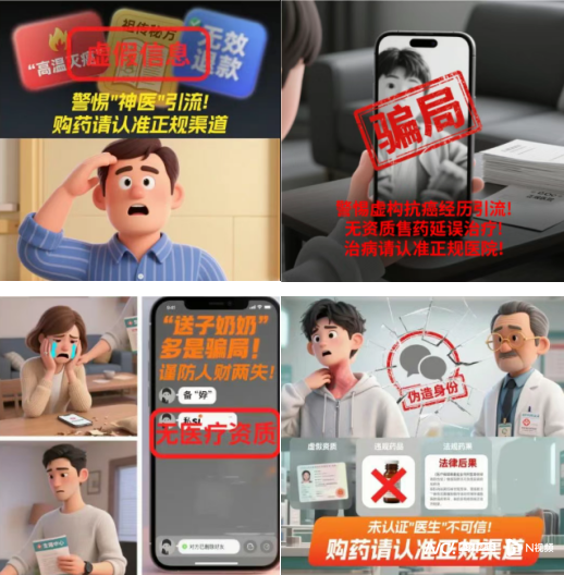 抖音提醒用户关注谎称“灭癌第一人”推销药物、虚构抗癌成功经历违规导诊开方、以拜访“送子奶奶”为名诱导私下建联、伪造医生身份违规诊疗售药4种典型伪医疗引流陷阱,谨防上当受骗。