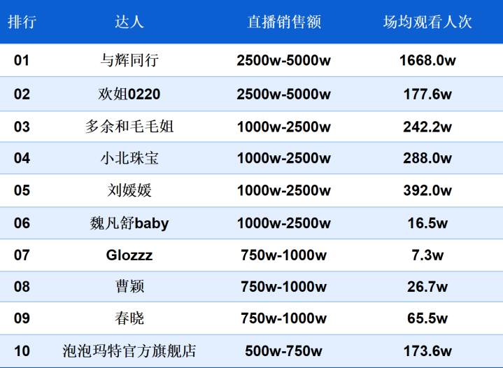 抖音8月14日直播带货日榜:与辉同行超2500万销售额重返榜首位置;新面孔魏凡舒、Glozzz跻身榜单第六、第七位。